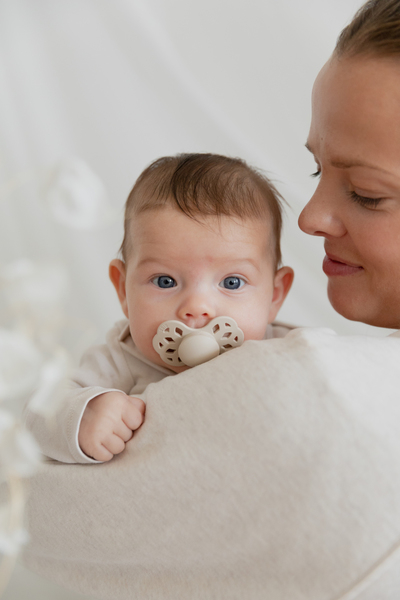 Suzetele BIBS Infinity cu tetina din silicon au forma specifică care oferă bebelușului tehnica potrivită de supt la sân.. Protectia rotund se afla la o distanta mai mare de fața bebelușului pentru a facilita alimentarea cu aer a pielii sensibile din jurul gurii bebelușului.