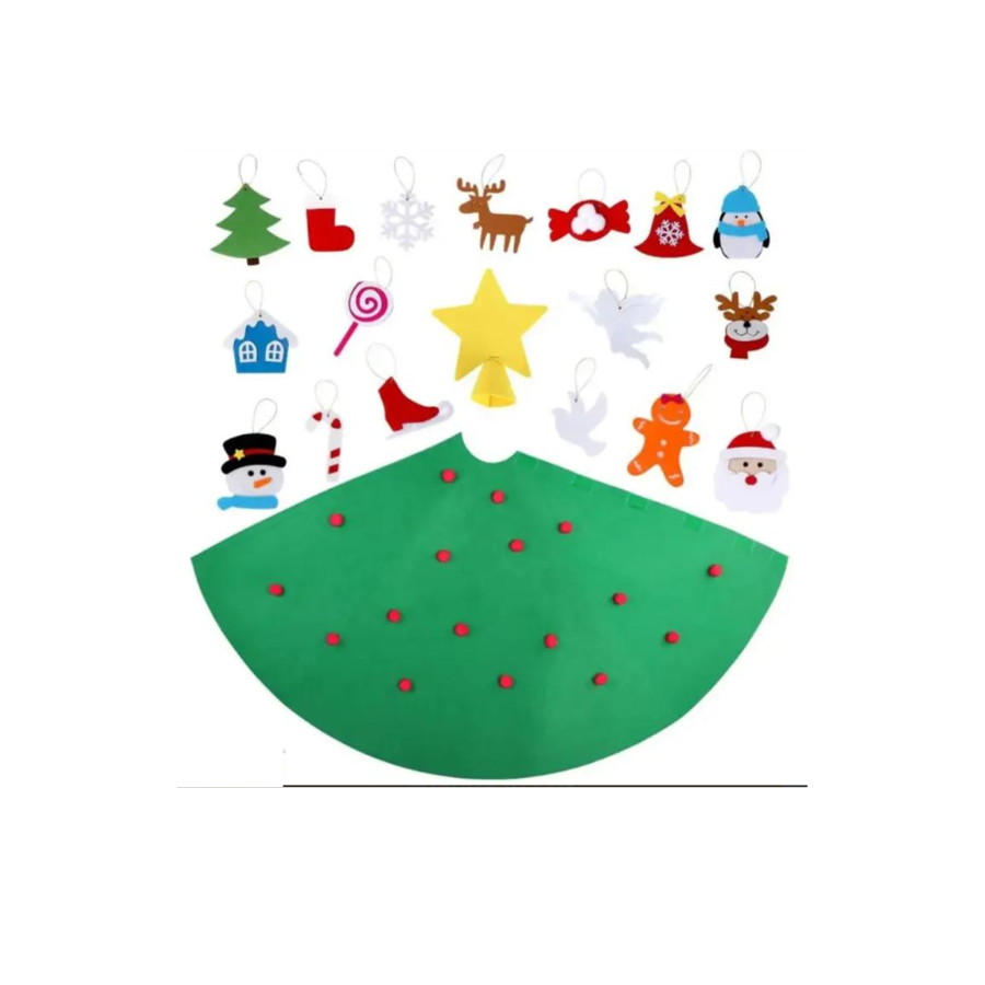 Brad de Craciun conic Montessori, realizat din pasla moale si durabila, are dimensiunea de 50x70 cm, fiind special conceput pentru copii. Designul sau 3D cu baza stabila elimina necesitatea de a-l fixa pe perete, fiind usor de mutat si amplasat in orice loc al casei. Setul include 20 de ornamente viu colorate, precum clopotei, om de zapada, fulgi de nea, bomboane si alte simboluri festive. Materialul este prietenos cu copiii, fara mirosuri neplacute sau substante daunatoare.