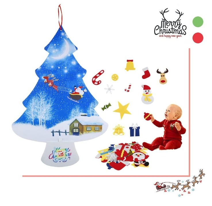 Bradul de Craciun Montessori pentru copii din pasla este o jucarie interactiva si educativa. Ideala pentru a stimula creativitatea si dexteritatea celor mici in perioada sarbatorilor de iarna. Conceput pentru a fi folosit de catre copiii mici, acest brad ofera o experienta de decorare sigura si distractiva, fiind prevazut cu 30 de ornamente colorate si detasabile, care pot fi atasate si rearanjate pe brad dupa dorinta copilului.