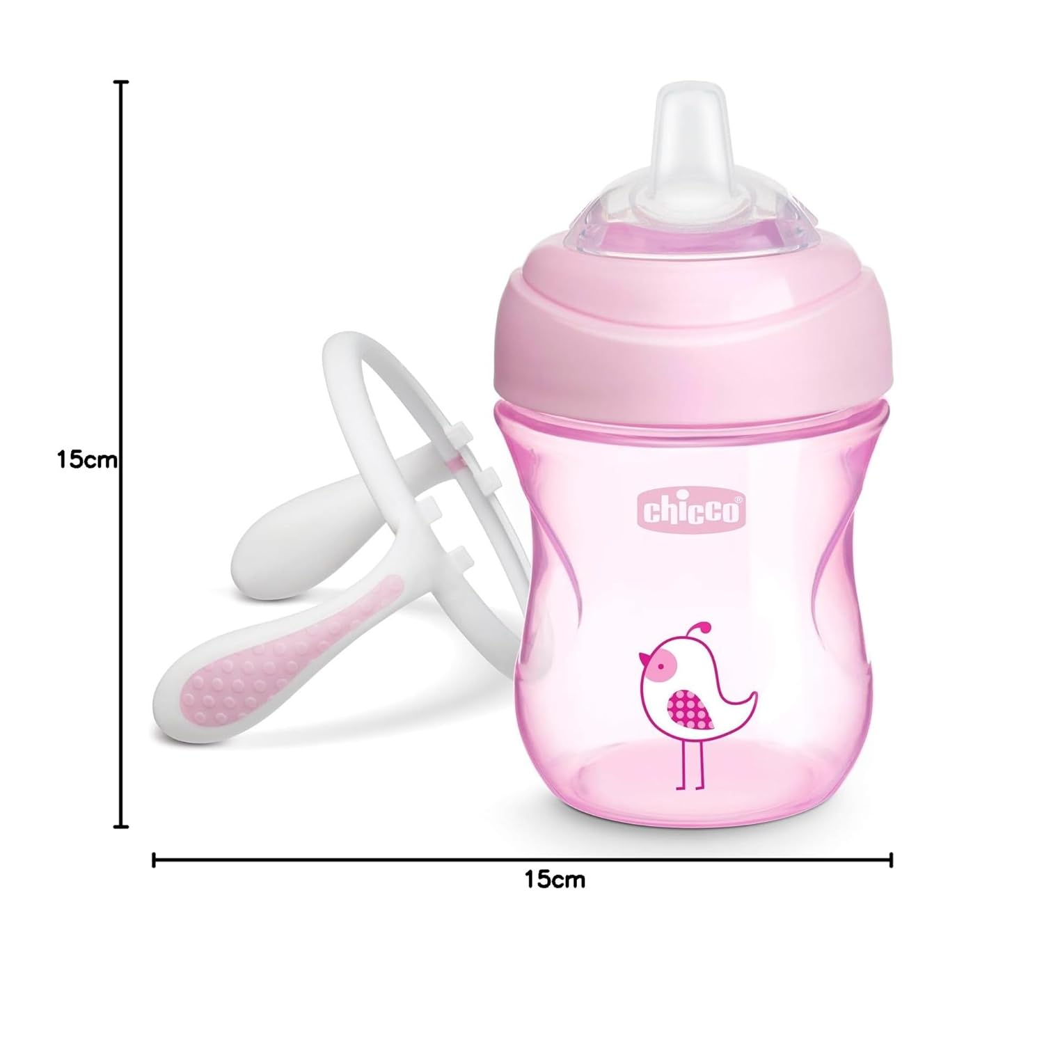 Cana de tranzitie Chicco, cu manere, roz 4 luni+ 200ml, este conceputa special pentru a ajuta micutii sa faca trecerea de la alaptare sau biberon la utilizarea unui pahar. Designul sau ergonomic si materialele de inalta calitate fac din aceasta cana un produs esential pentru fiecare parinte.