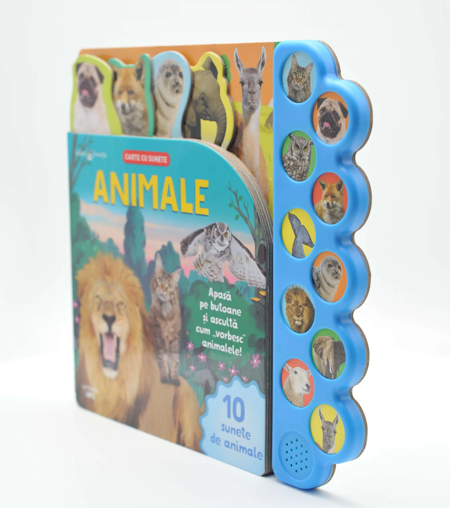 Unul dintre cele mai mari avantaje ale acestei carti este sectiunea cu 10 sunete diferite de animale. Fiecare buton corespunde unui animal specific si, atunci cand este apasat, copilul poate asculta sunetele produse de acesta. Acest aspect interactiv nu doar ca ii distreaza pe cei mici, dar ii si ajuta sa invete si sa recunoasca diferite sunete din natura.