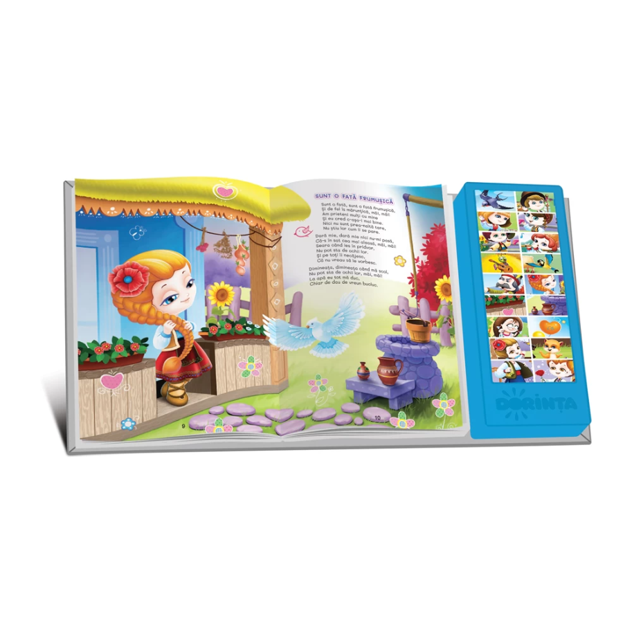 Redescoperă farmecul copilăriei autentice românești cu ajutorul unei cărți interactive unice – Carte cu sunete - Cantece din folclorul romanesc. Această carte specială, editată de Editura Dorința, aduce în prim-plan cele mai îndrăgite cântece populare românești, reinterpretate într-un format modern, atrăgător și educativ pentru cei mici.