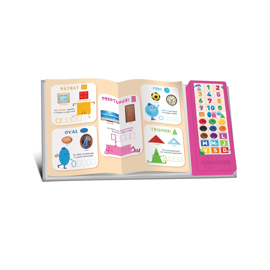 Cartea are 16 pagini ilustrate, fiecare gandita sa ajute copilul sa invete numerele de la 1 la 10 in romana si engleza, folosind metoda asociativa. Cu ajutorul panoului sonor colorat, copilul poate apasa pe butoanele corespunzatoare fiecarui numar si va auzi pronuntia corecta in ambele limbi. Astfel, recunoasterea cifrelor devine intuitiva si memorabila.