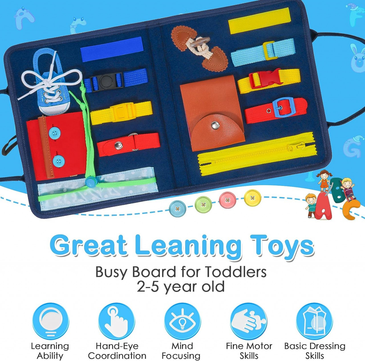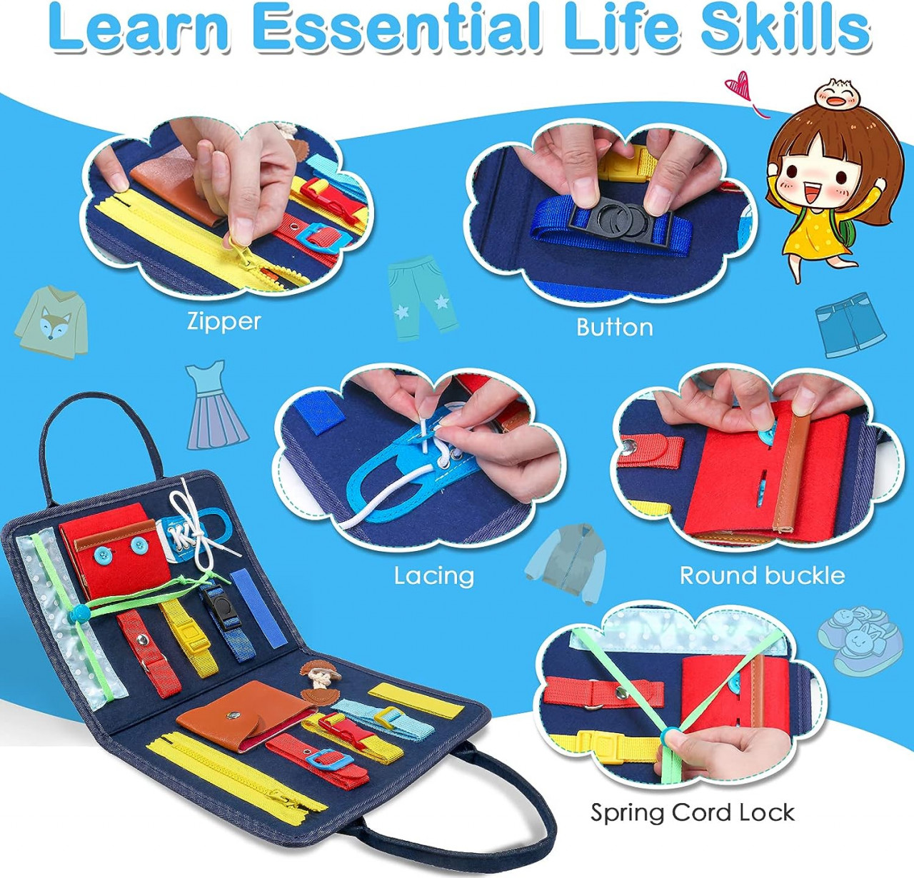 ✅ Dezvoltarea abilitatilor motorii – Cu ajutorul celor 14 elemente interactive, copiii isi pot exersa dexteritatea manuala si coordonarea mana-ochi. Activitati precum inchiderea fermoarelor, prinderea cataramelor, legarea sireturilor si inchiderea nasturilor ii ajuta sa isi dezvolte independenta.