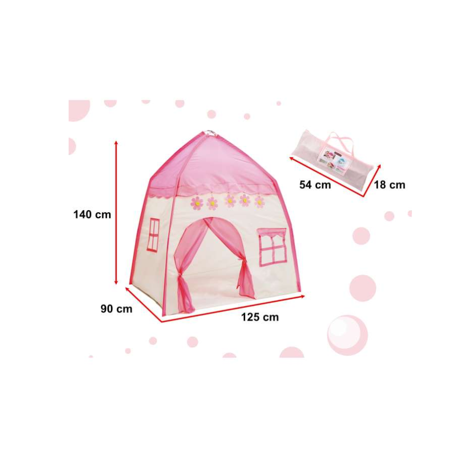Fabricat din materiale usoare si durabile, acest cort de joaca roz ofera un mediu sigur si confortabil pentru joaca. Dimensiunile sale generoase permit copiilor sa se distreze singuri sau alaturi de prieteni si jucariile preferate. Structura stabila asigura rezistenta in timpul activitatilor energice, iar plasa de la ferestre permite o buna ventilatie, oferind totodata lumina naturala in interior.