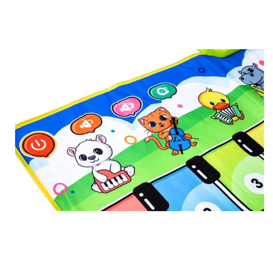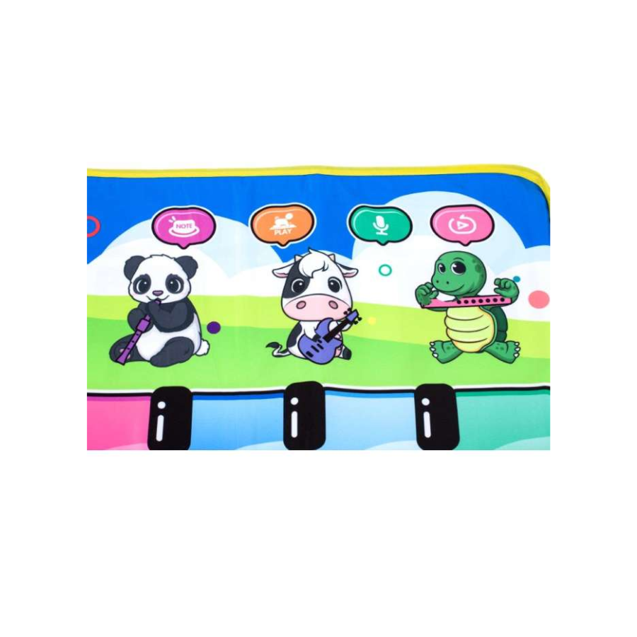 Covor interactiv cu pian ofera o experienta multisenzoriala pentru bebelusi si copii mici. Suprafata sa este decorata cu imagini viu colorate care activeaza diverse sunete muzicale. Include:
