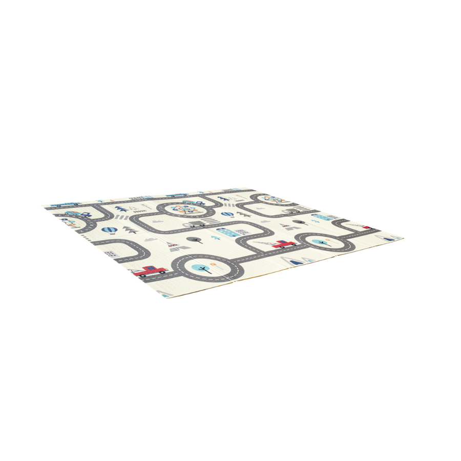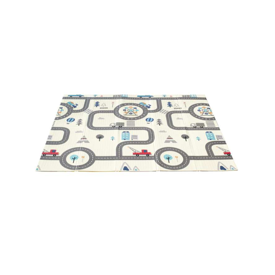 Unul dintre avantajele majore ale acestui covor pliabil din spuma este designul sau dublu. Pe o parte, copiii vor descoperi un peisaj vesel cu animalute prietenoase, stimuland creativitatea si invatarea vizuala. Pe cealalta parte, traseele si strazile desenate ii ajuta pe cei mici sa isi dezvolte imaginatia si sa creeze propriile povesti cu masinute si personaje.