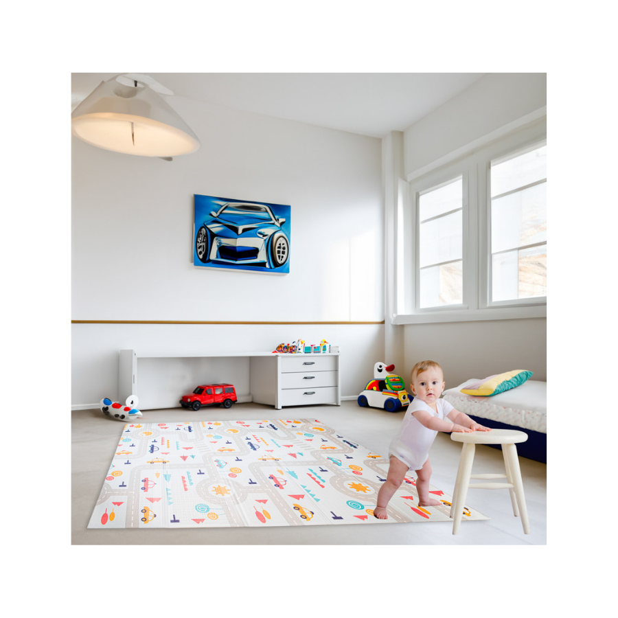 Covorul este usor de pliat si transportat, ceea ce il face ideal pentru familiile active sau pentru camere cu spatiu limitat. Cand nu este folosit, se pliaza compact si se poate depozita oriunde. In plus, curatarea este foarte simpla – o laveta umeda este suficienta pentru a-l mentine curat si igienic.