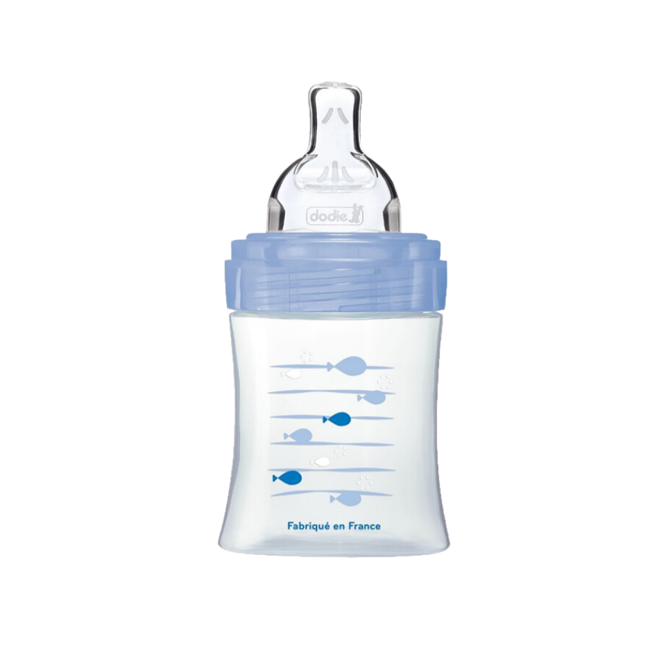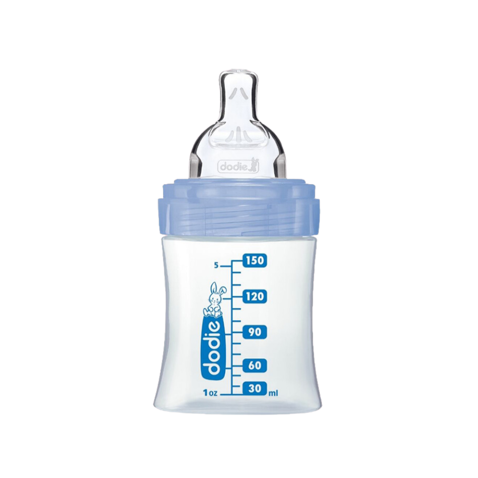 Biberonul cu tetina plată Dodie imită forma turtită a mamelonului în timpul alăptării pentru a sprijini trecerea de la sân la biberon.