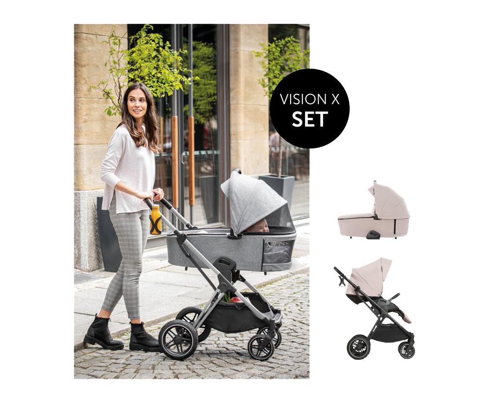 Setul Vision X îți indeplineste toate dorințele. Setul de cărucior premium hauck poate fi utilizat chiar de la naștere și crește împreună cu copilul tău.
