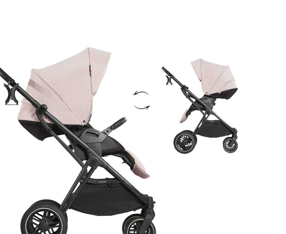 Scaunul de înaltă calitate poate fi inversat printr-un simplu clic. Permite copilului să păstreze contactul vizual cu tine sau să descopere împrejurimile.