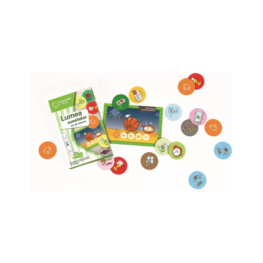 Descopera universul fascinant al sunetelor cu jocul de memorie Lumea Sunetelor din colectia Raspundel Istetel. Acest joc interactiv combina memoria vizuala cu cea auditiva, ajutandu-i pe cei mici sa invete prin joaca si explorare.
