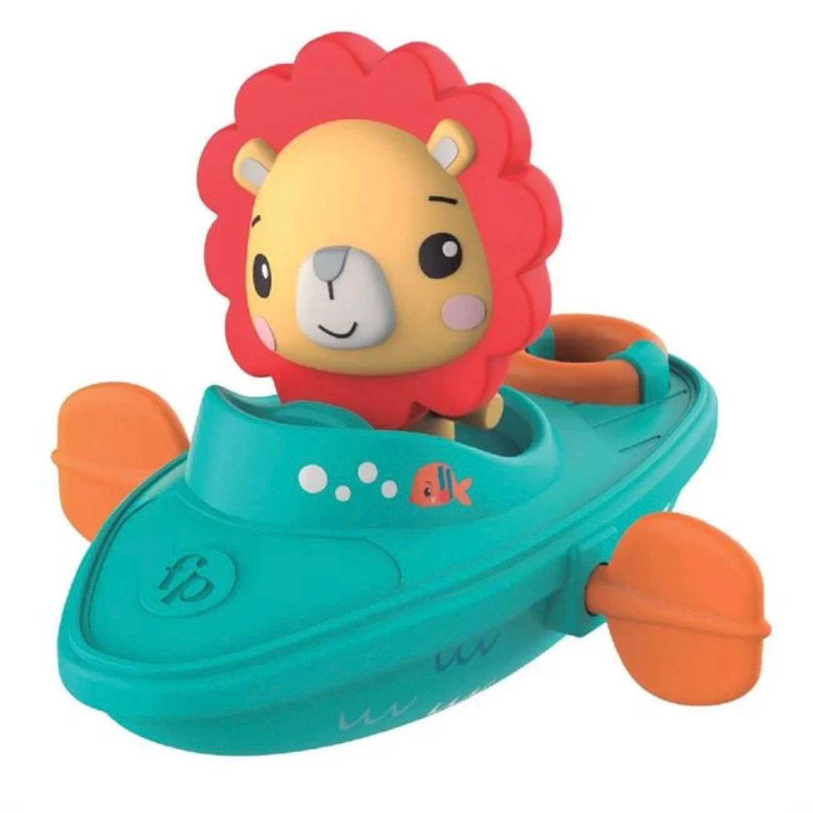 - Jucaria de baie Fisher-Price are un design prietenos, cu un leu simpatic si o barca turcoaz. Materialele sunt de inalta calitate, fara BPA, astfel incat sa fie complet sigura pentru cei mici. Dimensiunea potrivita face jucaria usor de manevrat pentru mainile mici ale copiilor.