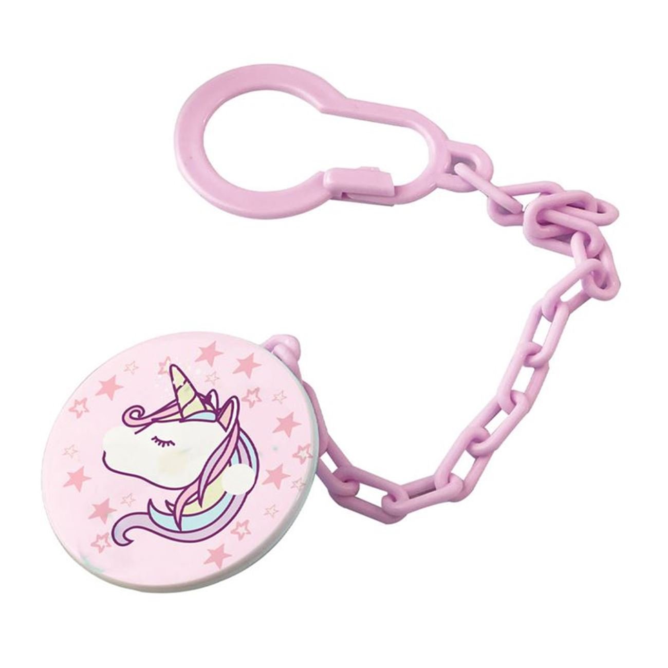 Asigurati-va ca suzeta ramane aproape de bebelusul dumneavoastra si departe de podea. Acest lant pentru suzeta cu design de unicorn este usor, sigur si adorabil. Potrivit atat pentru hainele celor mici, cat si pentru carucioare, acest lant previne pierderea suzetei si evita contactul acesteia cu suprafete murdare.