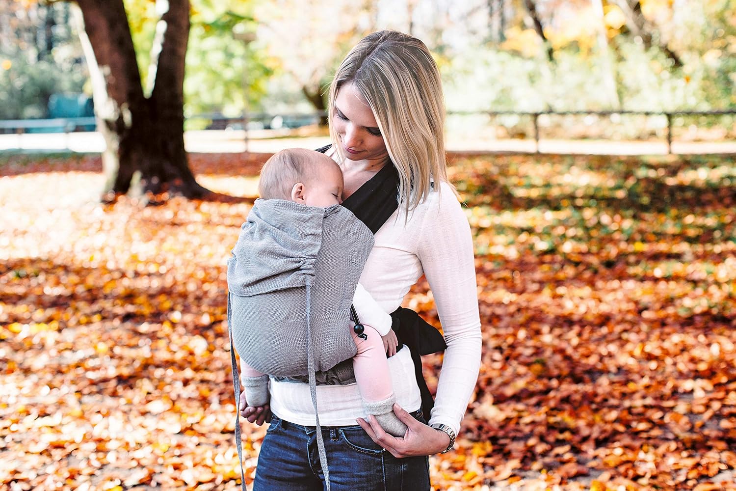 Marsupiul este dotat cu curele captusite pentru umeri si o centura de sold care distribuie uniform greutatea, oferind confort atat parintelui, cat si copilului. Curelele ajustabile permit o potrivire perfecta pentru orice dimensiune, iar capotina flexibila protejeaza capul bebelusului.