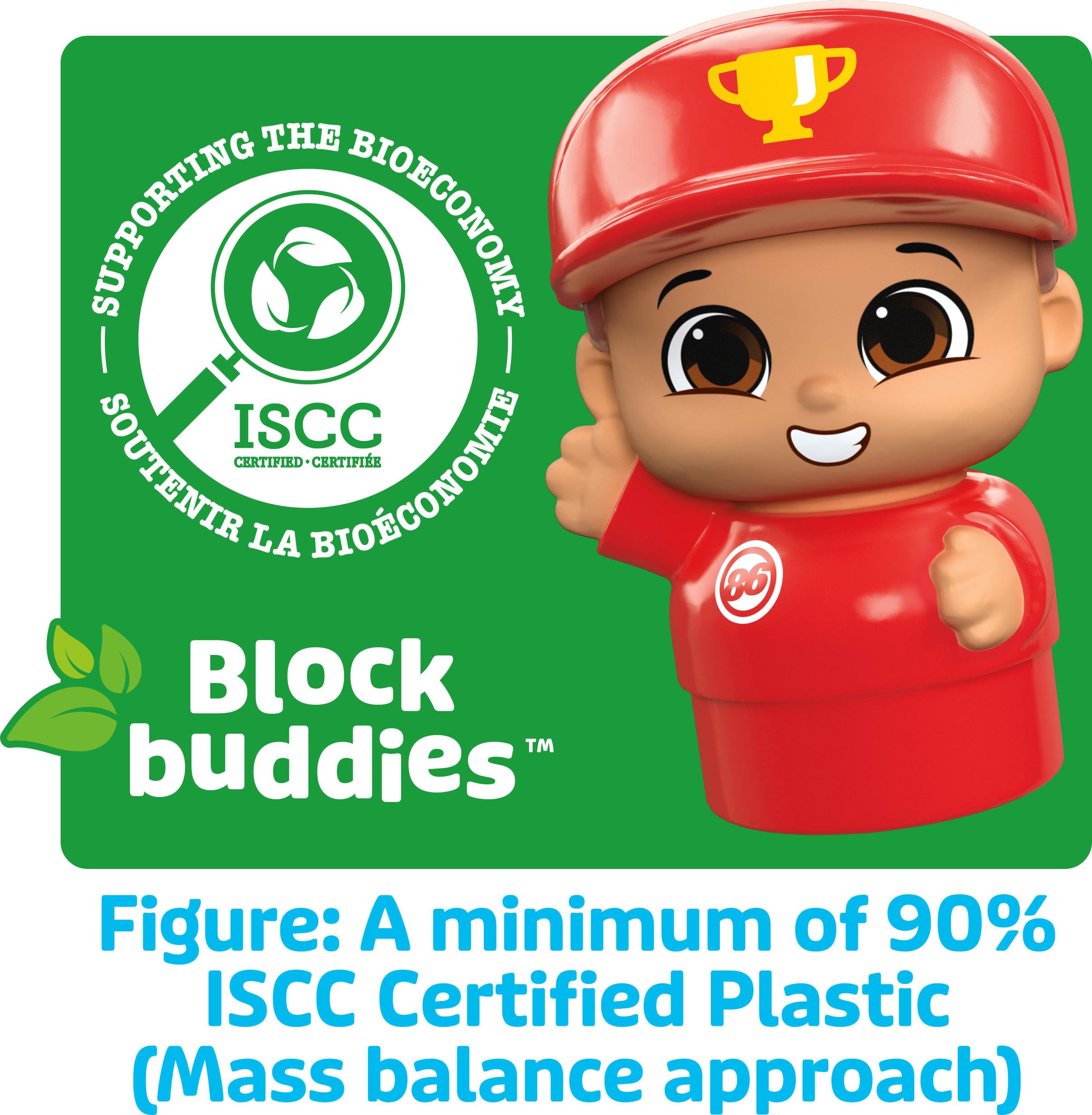 Vehiculul rulant permite depozitarea blocurilor in interior, asigurand o curatare rapida si mentinand spatiul de joaca organizat. Blocurile mari sunt usor de apucat si sigure pentru copiii mici, fiind fabricate din materiale durabile si prietenoase cu mediul. Figurina Block Buddies adauga un element de joaca suplimentar, incurajand copiii sa creeze povesti si aventuri imaginative.
