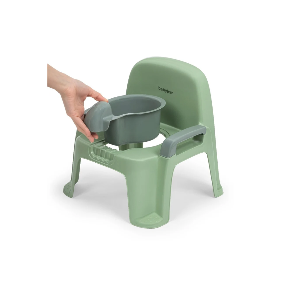 Olita scaunel verde pentru copii BabyJem este un accesoriu esential pentru antrenarea copilului in trecerea de la scutec la toaleta. Realizata din materiale plastice nontoxice, aceasta olita combina confortul si siguranta cu un design practic si usor de utilizat.