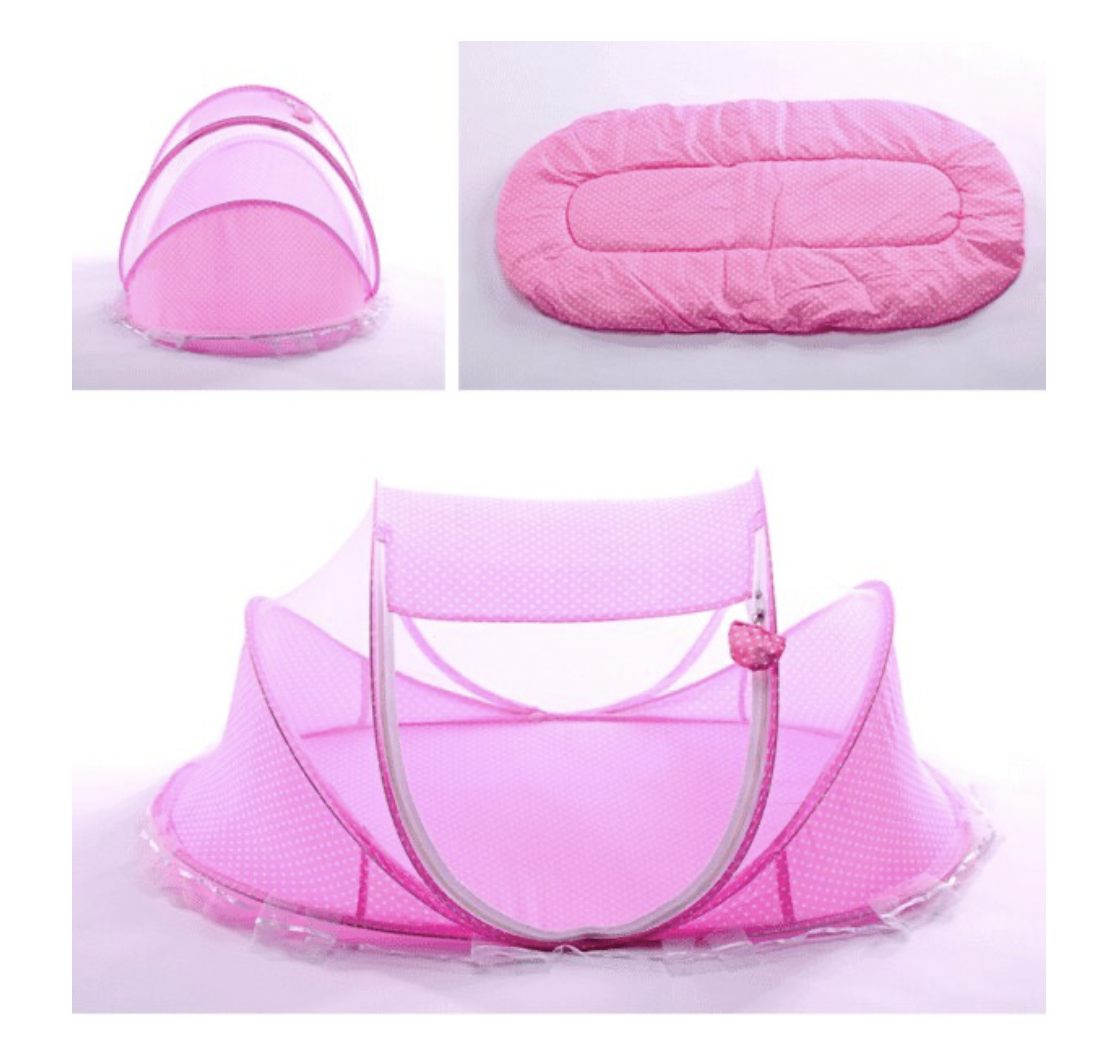 Patut pliabil pentru bebelusi 110x60x38cm pentru voiaj, roz