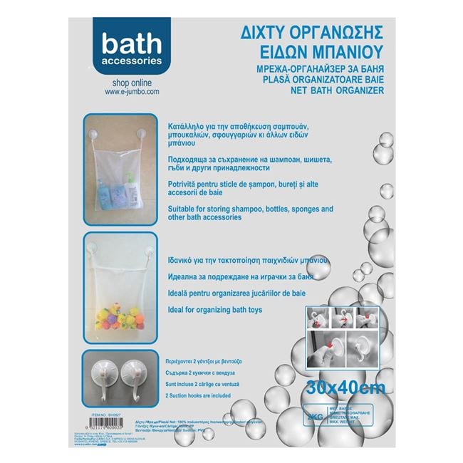 Fabricata din poliester de calitate, plasa este durabila si usor de curatat, fiind ideala pentru mediul umed al baii. Cu o capacitate maxima de sustinere de 2 kg, aceasta suporta fara probleme toate articolele de care aveti nevoie in baie, inclusiv jucariile celor mici.