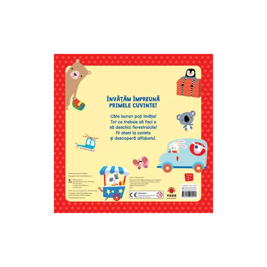 Cu ajutorul acestei carti, cei mici pot invata cuvintele esentiale din viata de zi cu zi. Fiecare pagina dezvaluie o noua surpriza atunci cand ferestruicile sunt deschise. Stimuland curiozitatea si oferind o modalitate captivanta de a retine informatiile. Prima carte cu ferestruici este conceputa pentru a sustine dezvoltarea vocabularului. Si recunoasterea vizuala a obiectelor si animalelor.