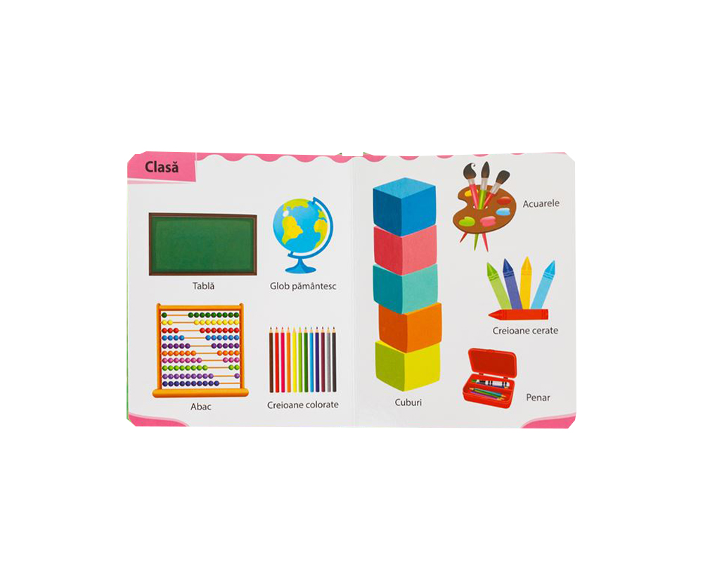 Carte cartonata educativa cu coperta dura pentru a invata copilul primele 100 de cuvinte.