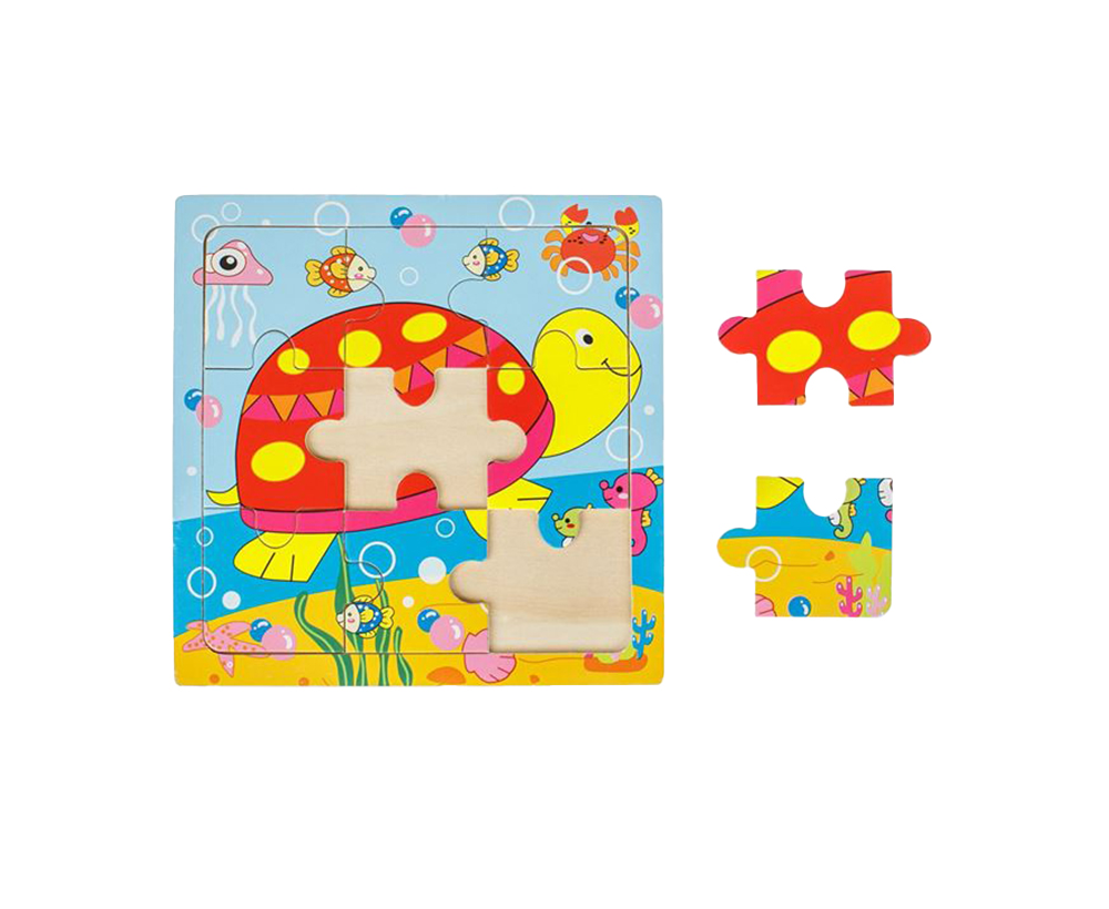 Puzzle din lemn cu 9 piese cu imagine broasca testoasa.