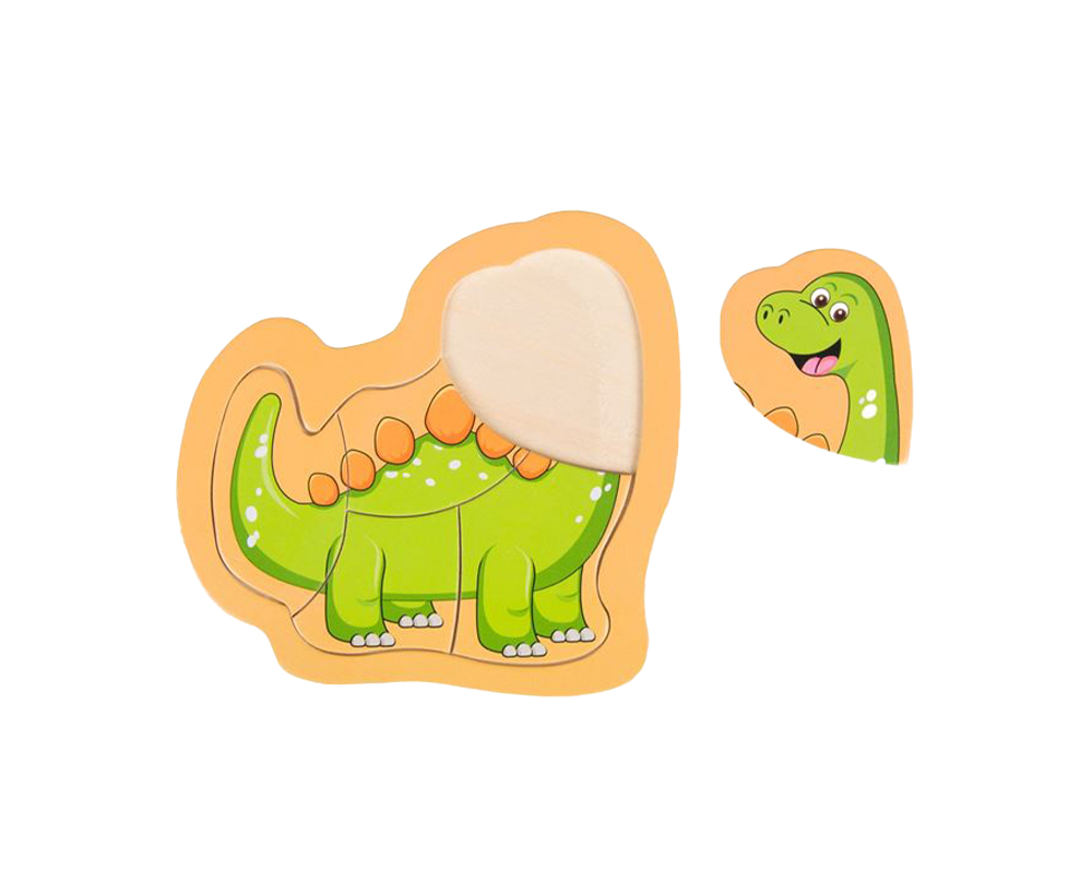 Puzzle din lemn cu 5 piese cu model dinozaur.