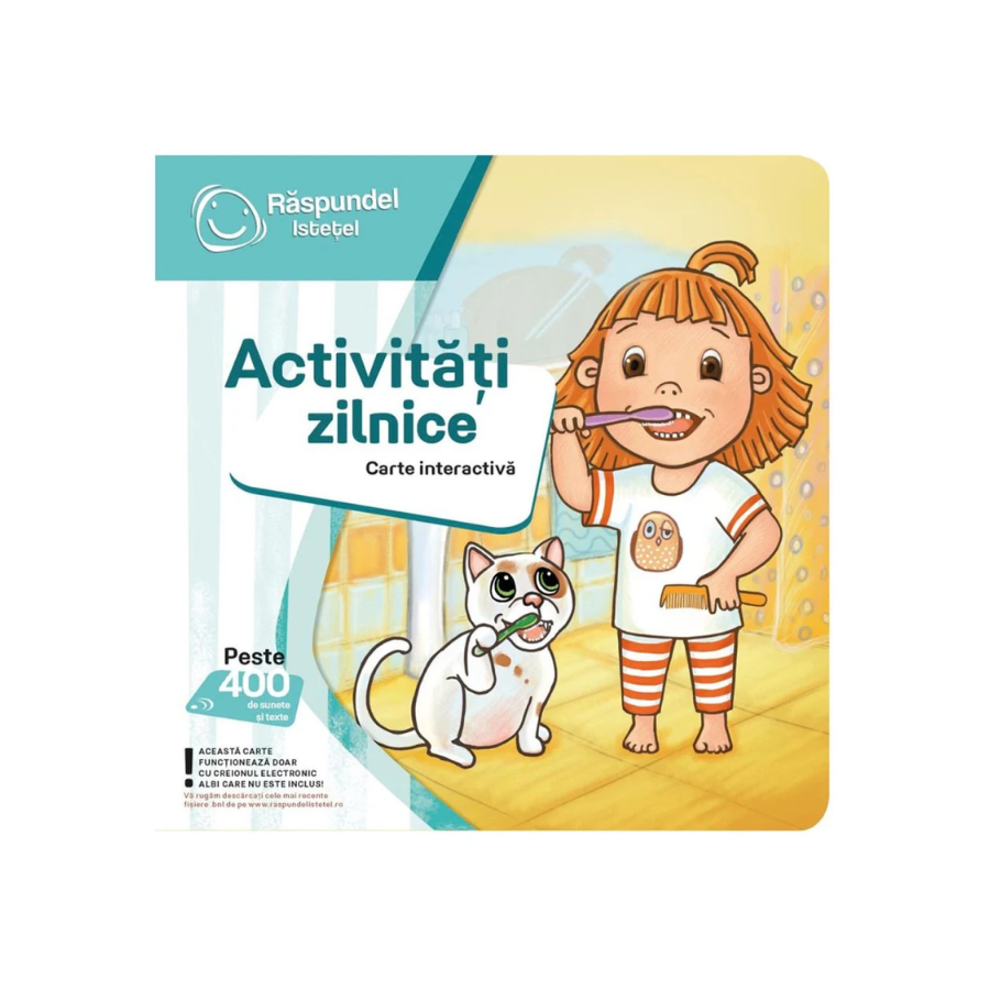 Carte educativa „Raspundel Istetel Activitati Zilnice” este partenerul ideal pentru micutii care doresc sa exploreze rutina zilnica intr-un mod interactiv si distractiv. Alaturi de Iulia, Ionut, catelul Max si pisica Mina, copiii vor invata pas cu pas activitatile zilnice, de la trezire si spalat pe dinti, pana la jocuri si cantece vesele. Fiecare pagina a cartii este plina de ilustratii atractive si sunete care vor capta atentia celor mici.
