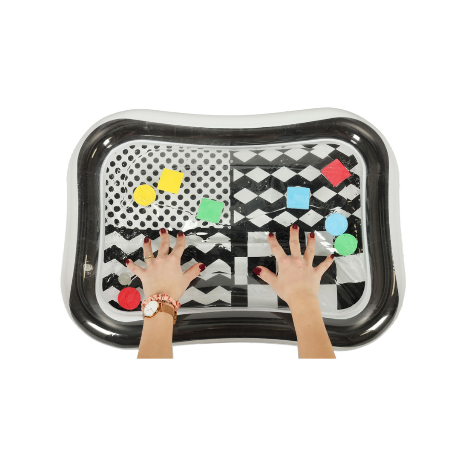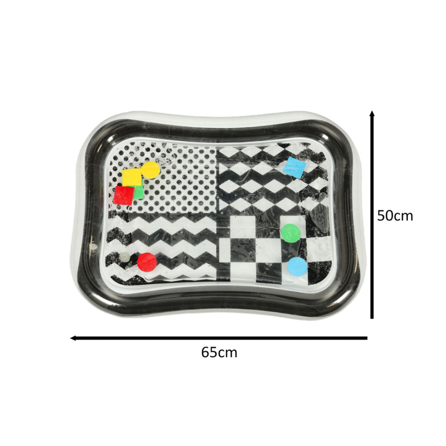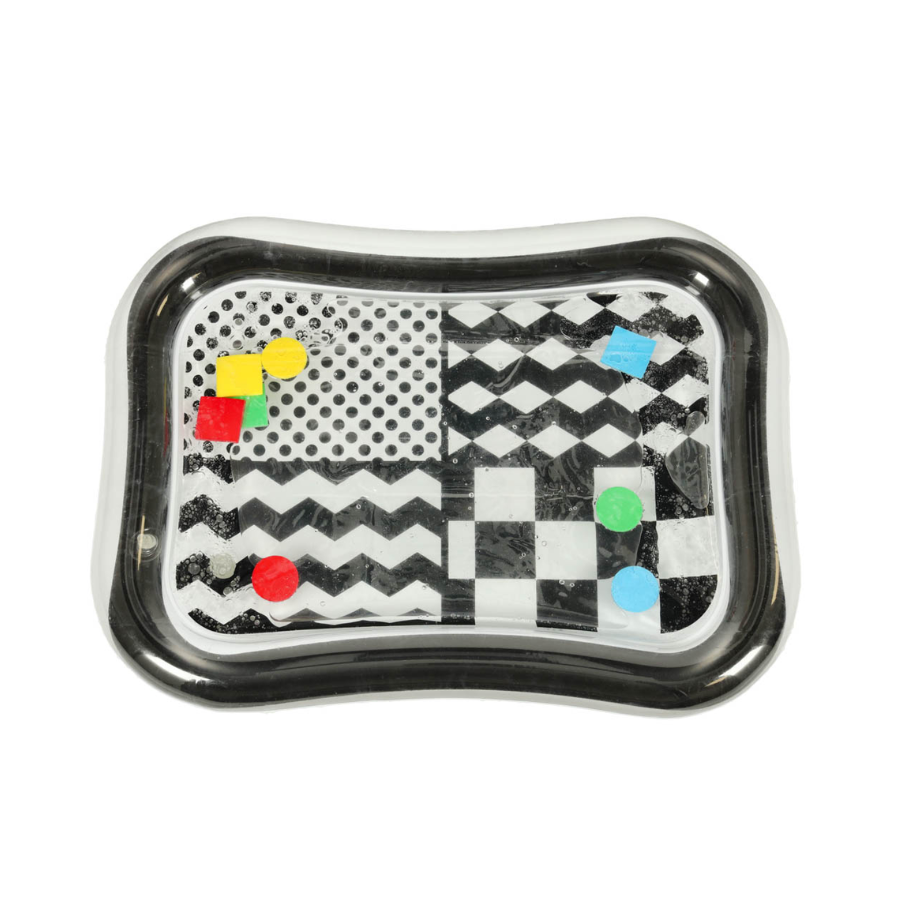 Aceasta saltea cu apa pentru bebelusi este prevazuta cu elemente contrastante alb-negru si forme geometrice viu colorate care plutesc in interiorul compartimentului umplut cu apa. Prin miscare, bebelusul interactioneaza cu aceste forme, dezvoltandu-si capacitatea de coordonare mana-ochi, perceptia vizuala, dar si recunoasterea culorilor si a formelor. Este o alegere ideala pentru timpul petrecut pe burtica, incurajand muschii gatului, umerilor si ai spatelui.
