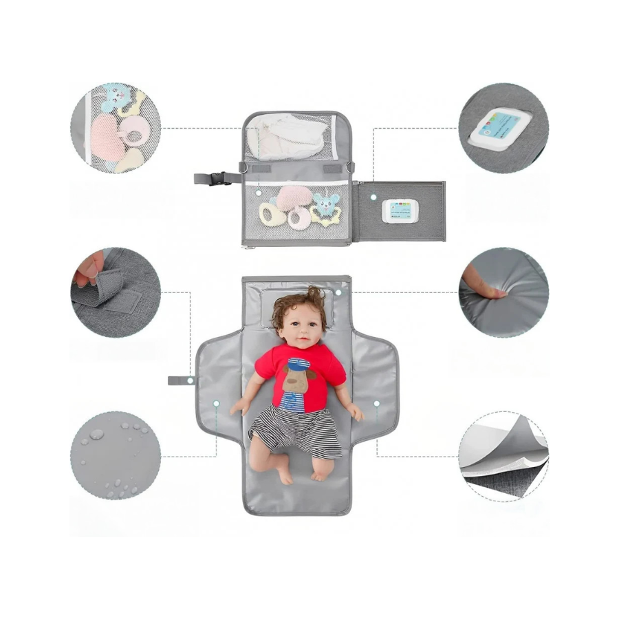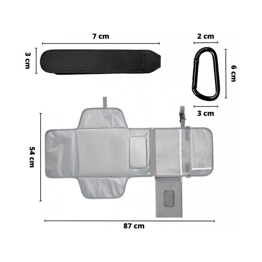 Salteluta portabila pentru schimbat scutece este un accesoriu indispensabil in rutina zilnica a parintilor moderni. Care isi doresc confort, igiena si functionalitate in timpul schimbarii scutecelor. Cu o dimensiune generoasa de 87x54 cm, aceasta salteluta ofera un spatiu sigur si curat pentru bebelusul tau, indiferent daca esti acasa, in parc sau in calatorii.