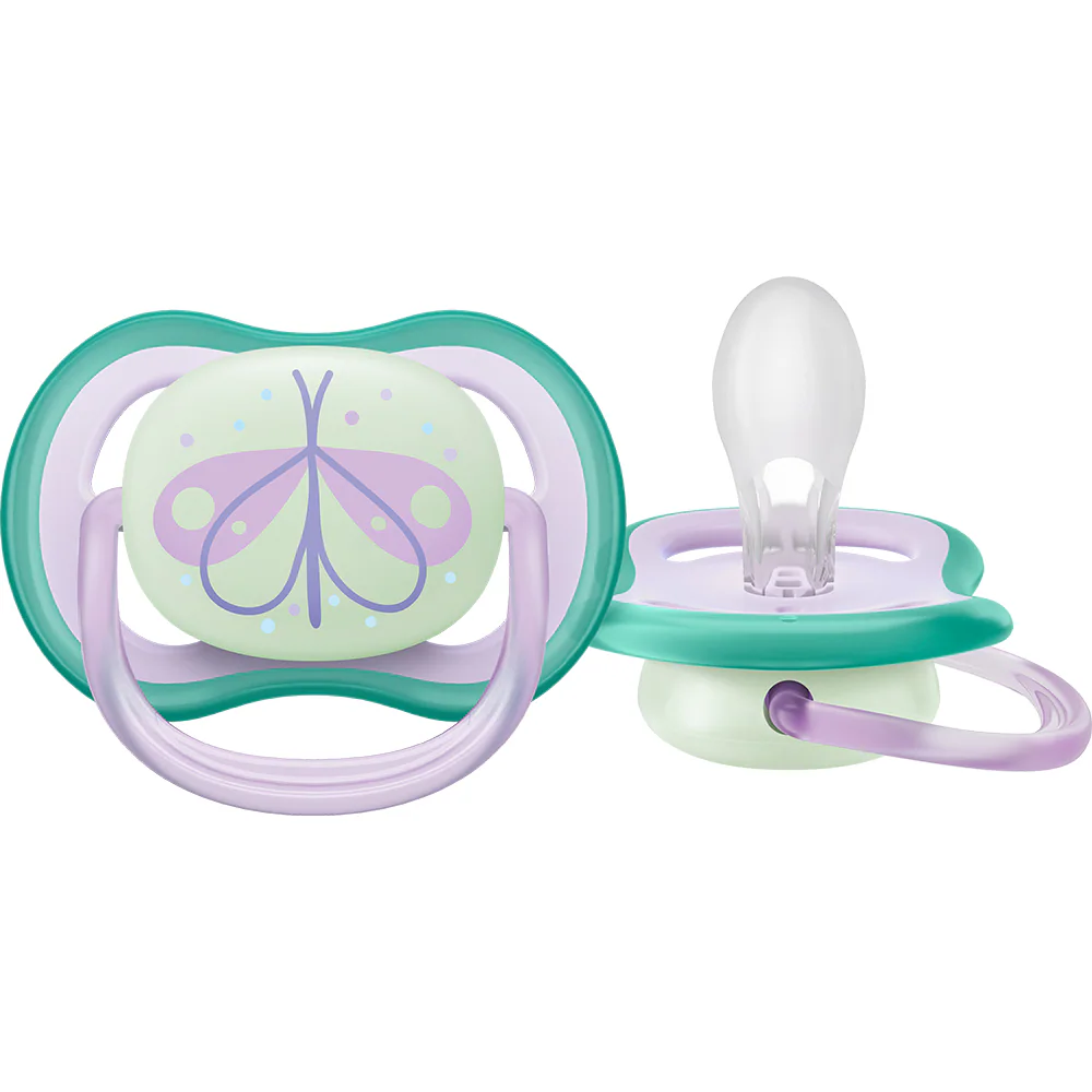 Pentru momentele cand luminile sunt stinse, Ultra Air Nighttime este dotata cu un buton fosforescent, usor de observat pe intuneric. Aceasta caracteristica ii ajuta pe parinti sa gaseasca rapid suzeta, fara a deranja somnul micutului.