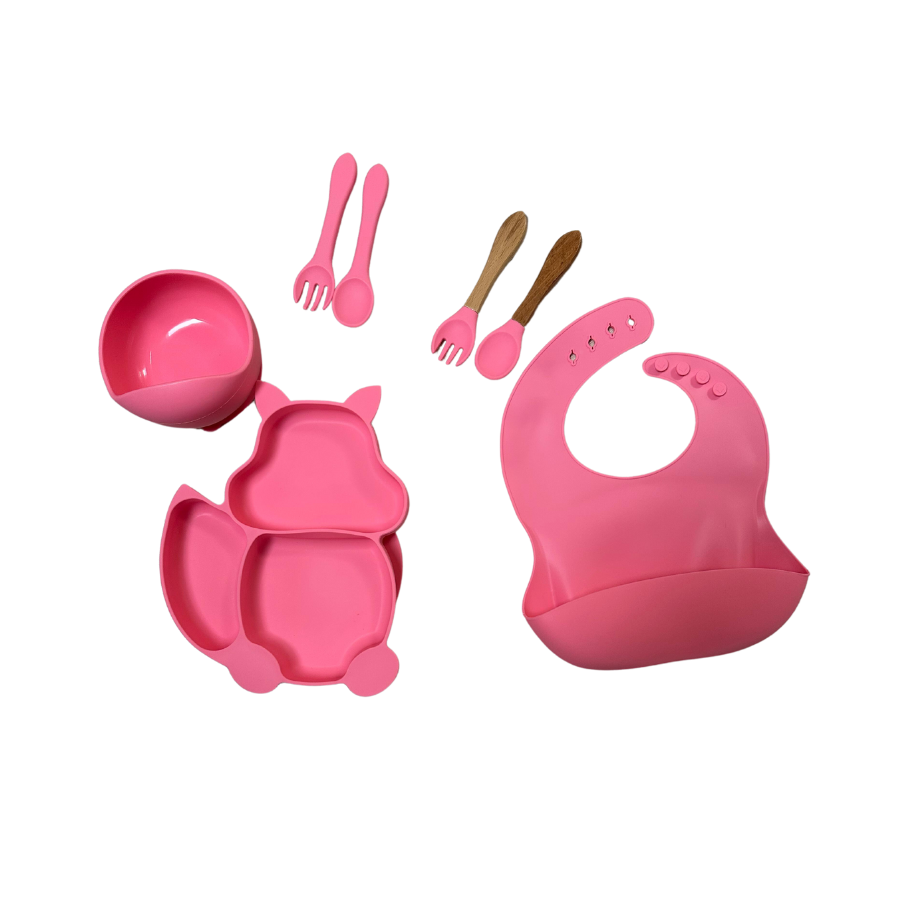 Set hranire bebelusi, 7 piese, termorezistent, fara BPA, roz