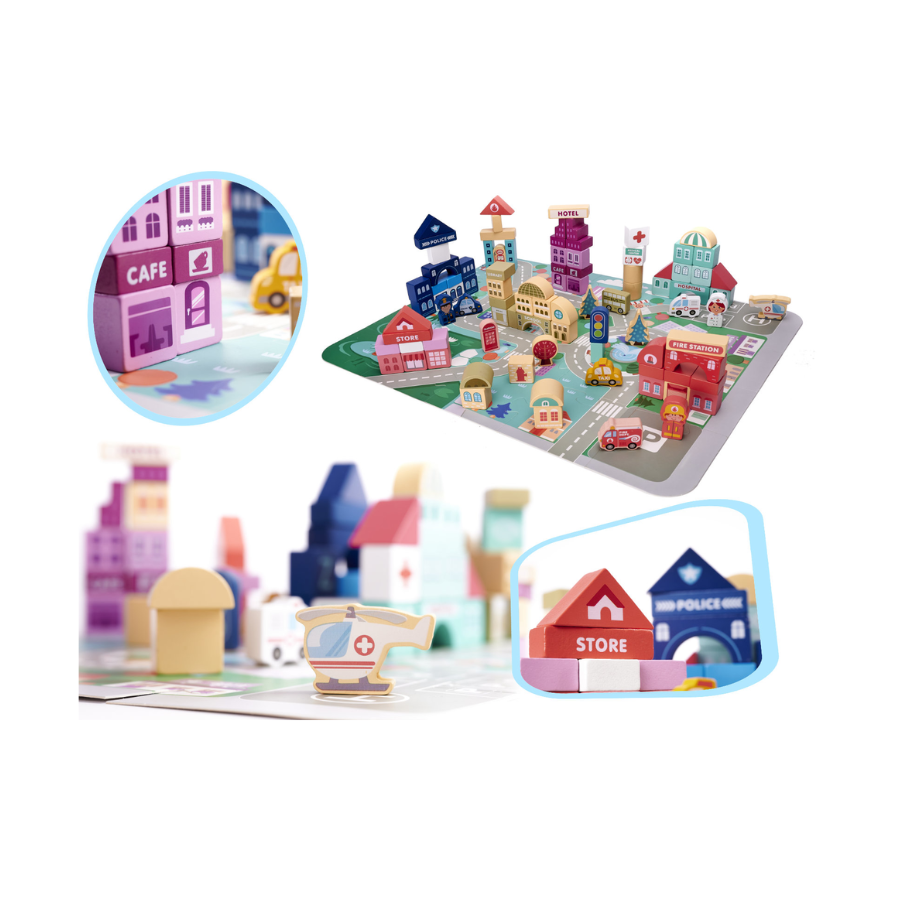 Transforma joaca intr-o aventura creativa cu acest set de jucarii de construit! Conceput pentru a stimula imaginatia si dezvoltarea abilitatilor motorii fine, acest set permite copiilor sa creeze propriul oras, plin de cladiri, vehicule si personaje fascinante. Cu 100 de piese colorate, acest set ofera nenumarate posibilitati de constructie si joaca.