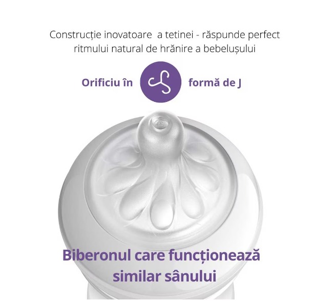 • Tetina cu design inovator: Imita forma sanului pentru o atasare naturala.