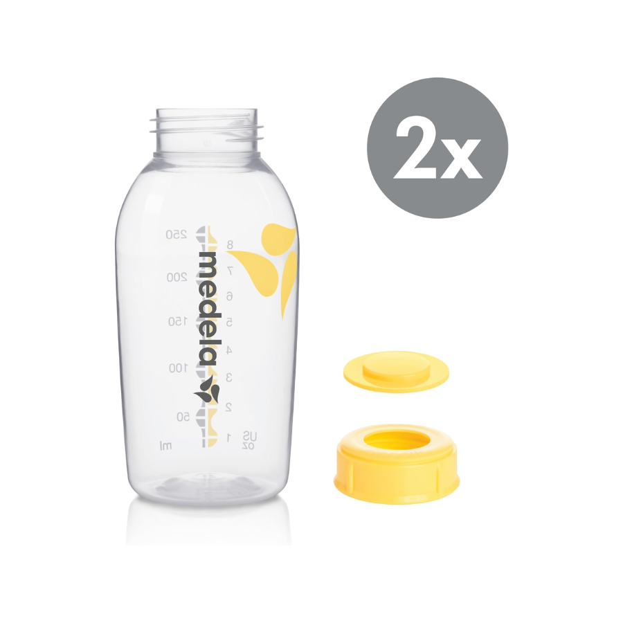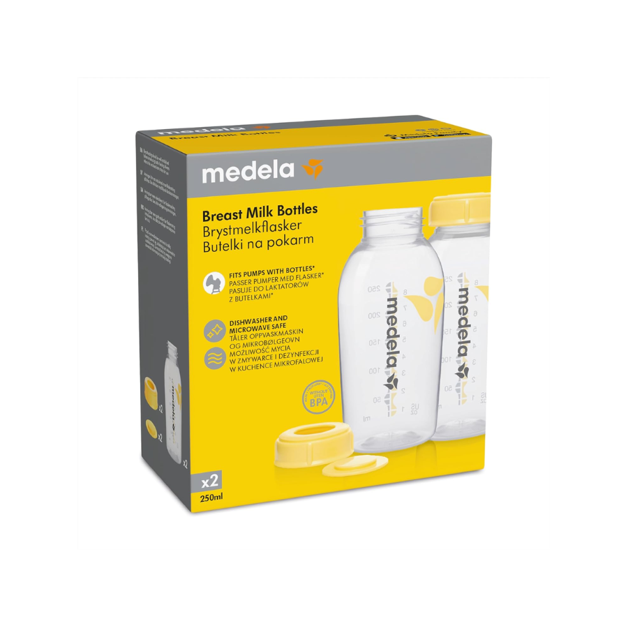 Cu o capacitate generoasa de 250ml fiecare, sticlele Medela sunt ideale atat pentru depozitarea zilnica, cat si pentru crearea unui stoc de lapte matern in congelator. Fiecare pachet include 2 sticle complet etanse, perfecte pentru utilizare zilnica.