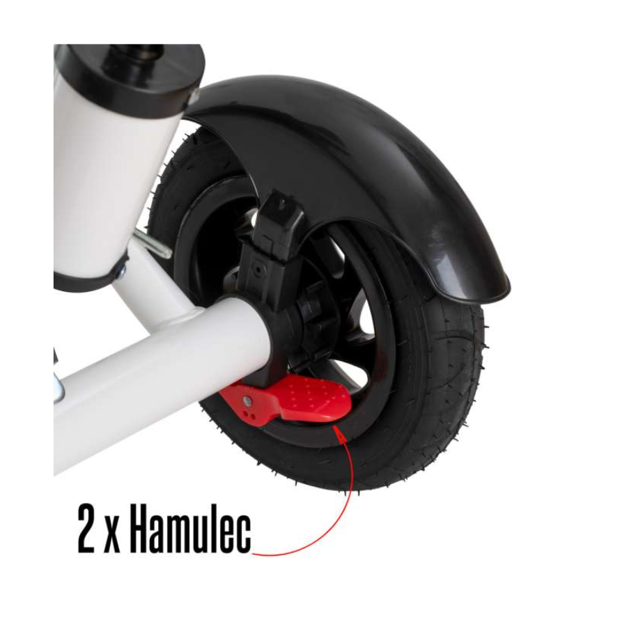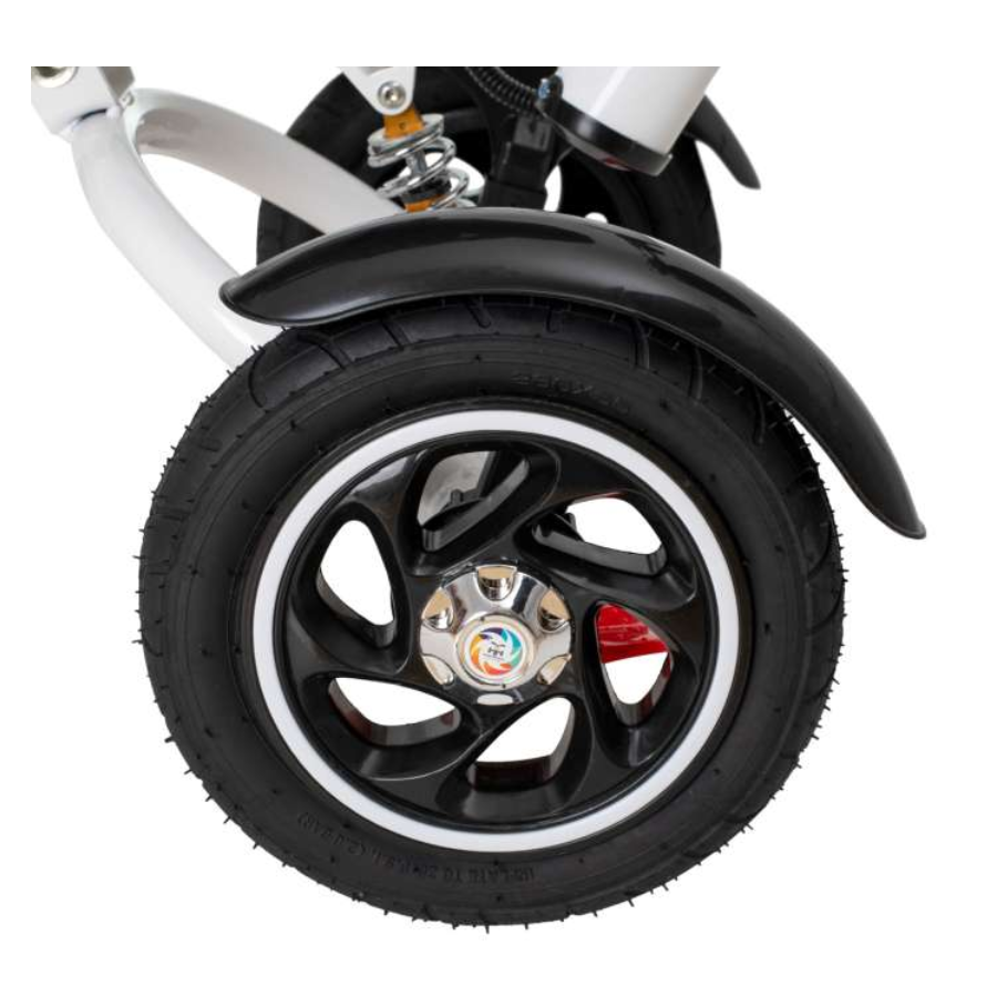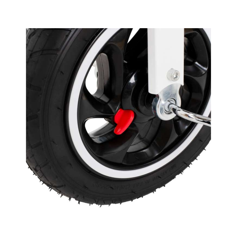 • Roți rezistente fără aer – elimină riscul de pană și oferă o aderență excelentă pe orice suprafață.