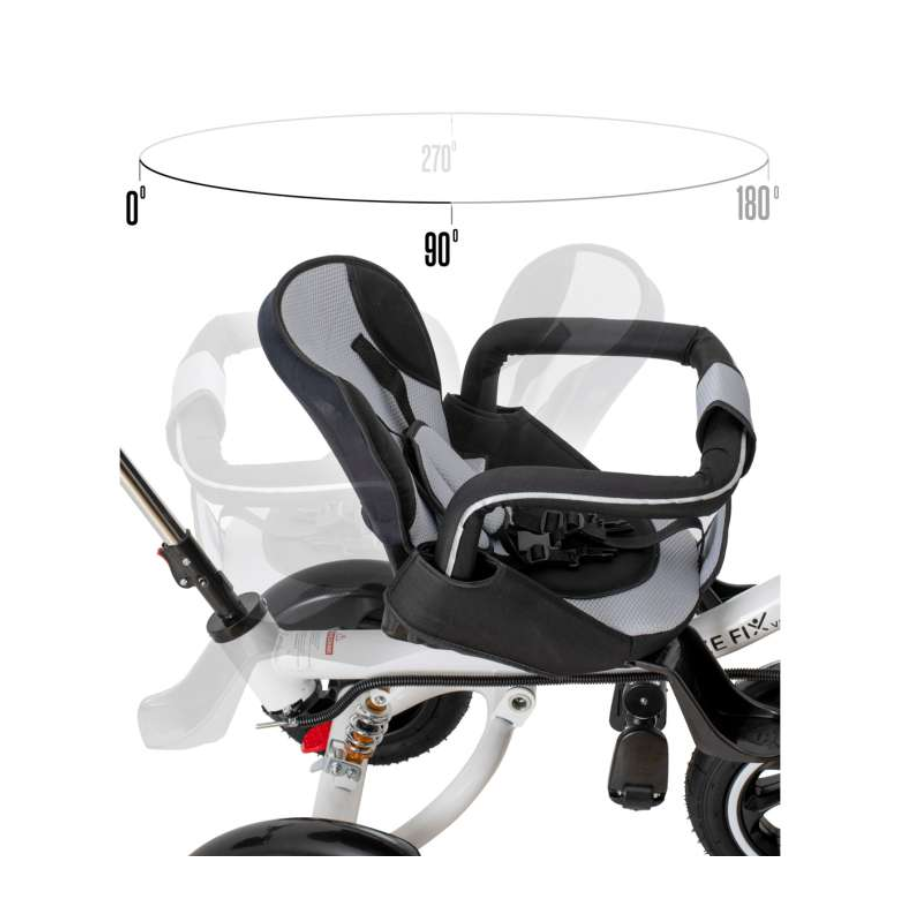 • Scaun reversibil 360° – permite poziționarea copilului fie cu fața, fie cu spatele către părinte.