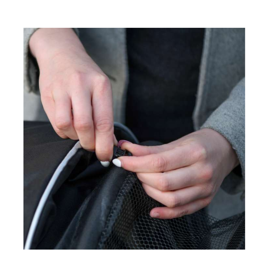 • Copertină extensibilă – protejează împotriva soarelui și permite supravegherea copilului.